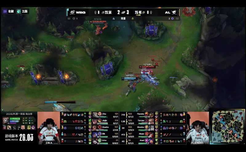 23分钟,WBG中路发难,突进越塔击杀AL双C